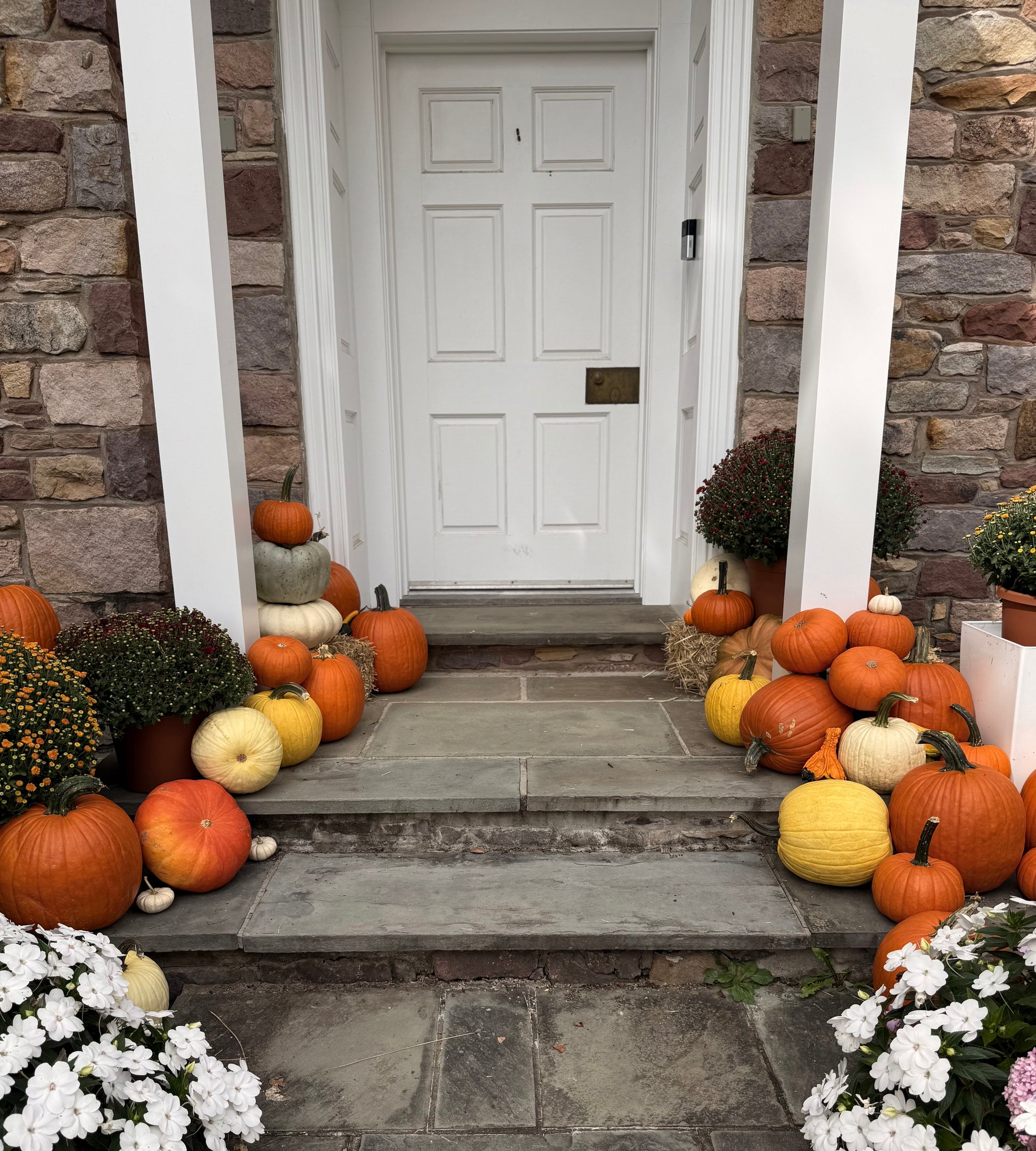Includes: 6 Large, 6 Medium, ~10 Pie Pumpkins, 6 Specialty, White Ghosts, & 1-2 Hay Bales.